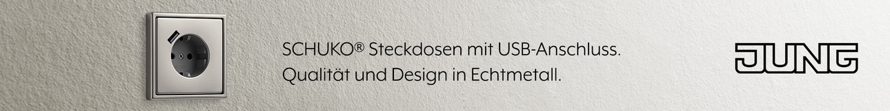 Ab Anfang 2026 sind USB-C-Anschlüsse für alle neuen Geräte Pflicht. JUNG bietet mit dem Ladegerät USB PD 60 eine platzsparende Lösung zum Laden von Akkus mit bis zu 60 Watt mit USB-C Port. Die Ladegeräte sind mit den Serien A, CD und LS kompatibel.